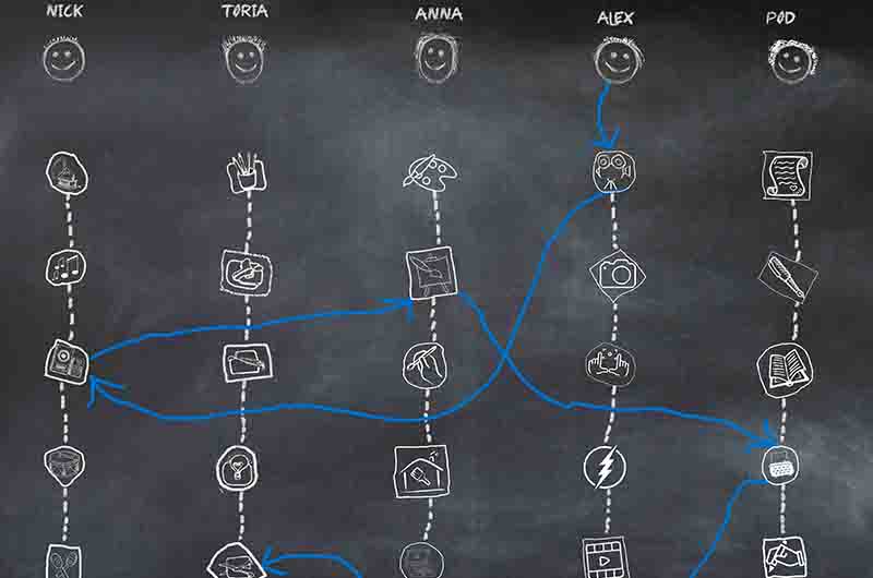 All 25 artworks are displayed in the galleries of this website accompanied by the artists’ thoughts and musings, sketches and doodles, gathered as they worked and shared with each other as each creative chain developed. We hope there will be opportunities in the not too distant future to view the work in galleries local to the artists involved in the project. In the meantime, there is a virtual gallery for you to ‘wander through’ at your leisure and from the safety and comfort of your own home..